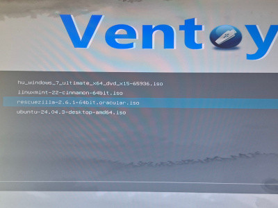 A gépet újraindítva a boot menüben tudtam választani a Ventoy-t, annak menüjéből mindhárom lemezképet és mindegyik szépen be is bootolt.